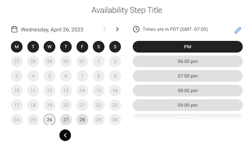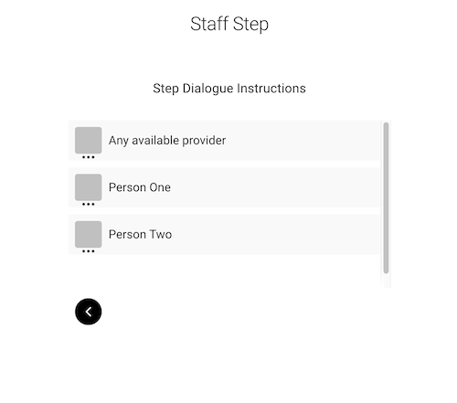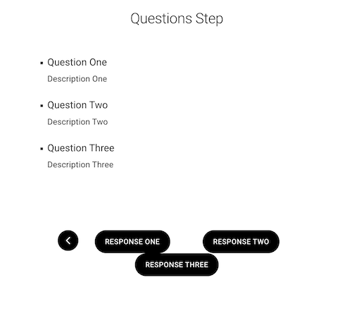 User can select from buttons as their answers. Question steps are ideal for questions with a small handful of answer options that require more context than can fit on something like a card or list item.